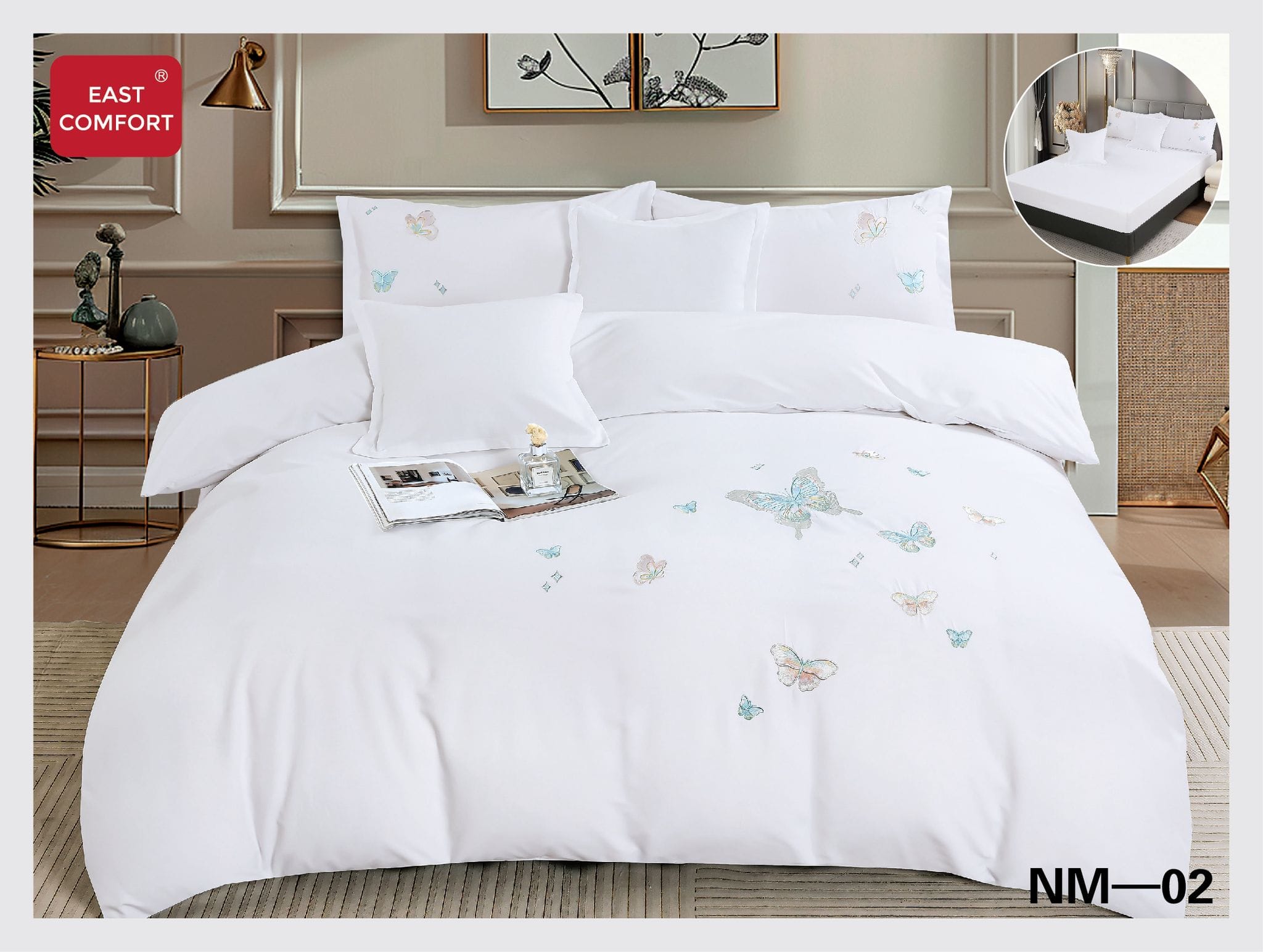 Set lenjerie compusa din 6 piese pentru pat dublu confectionata din bumbac finet  de calitate superioara. Aceasta lenjerie premium este ideala pentru a da o nota eleganta dormitorului tau sau pentru a o folosi in cadrul unei pensiuni sau hotel si a-ti intampina oaspetii in cel mai elegant mod posibil.