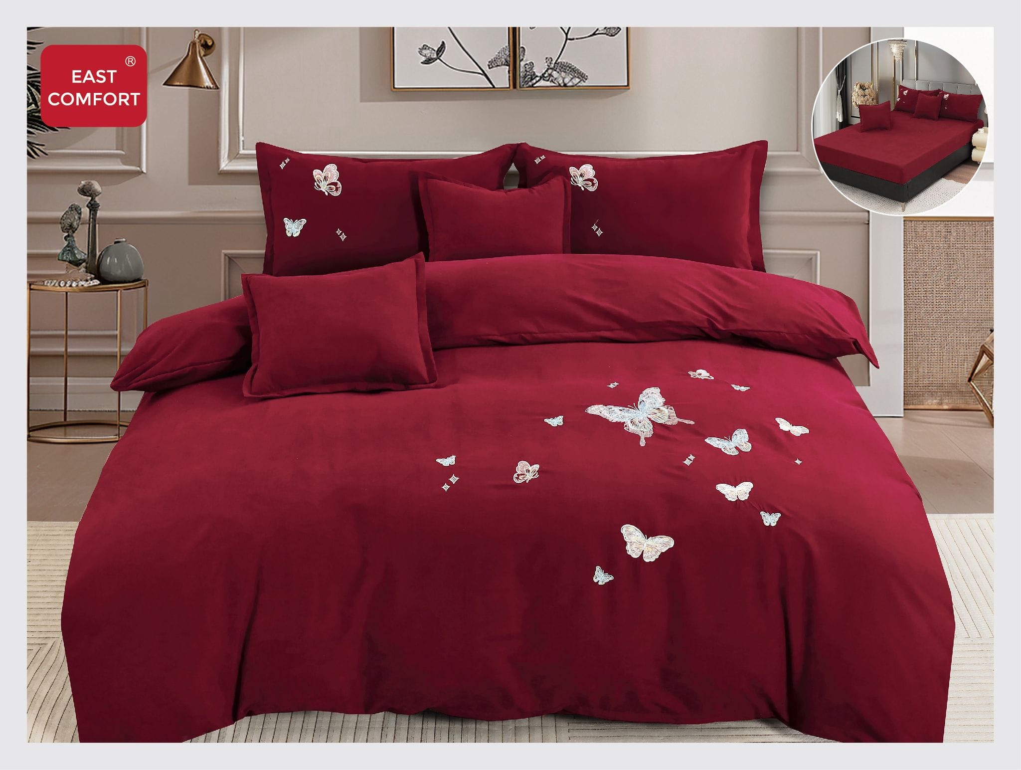 Lenjerie de pat brodata 6 piese cu elastic BRD26