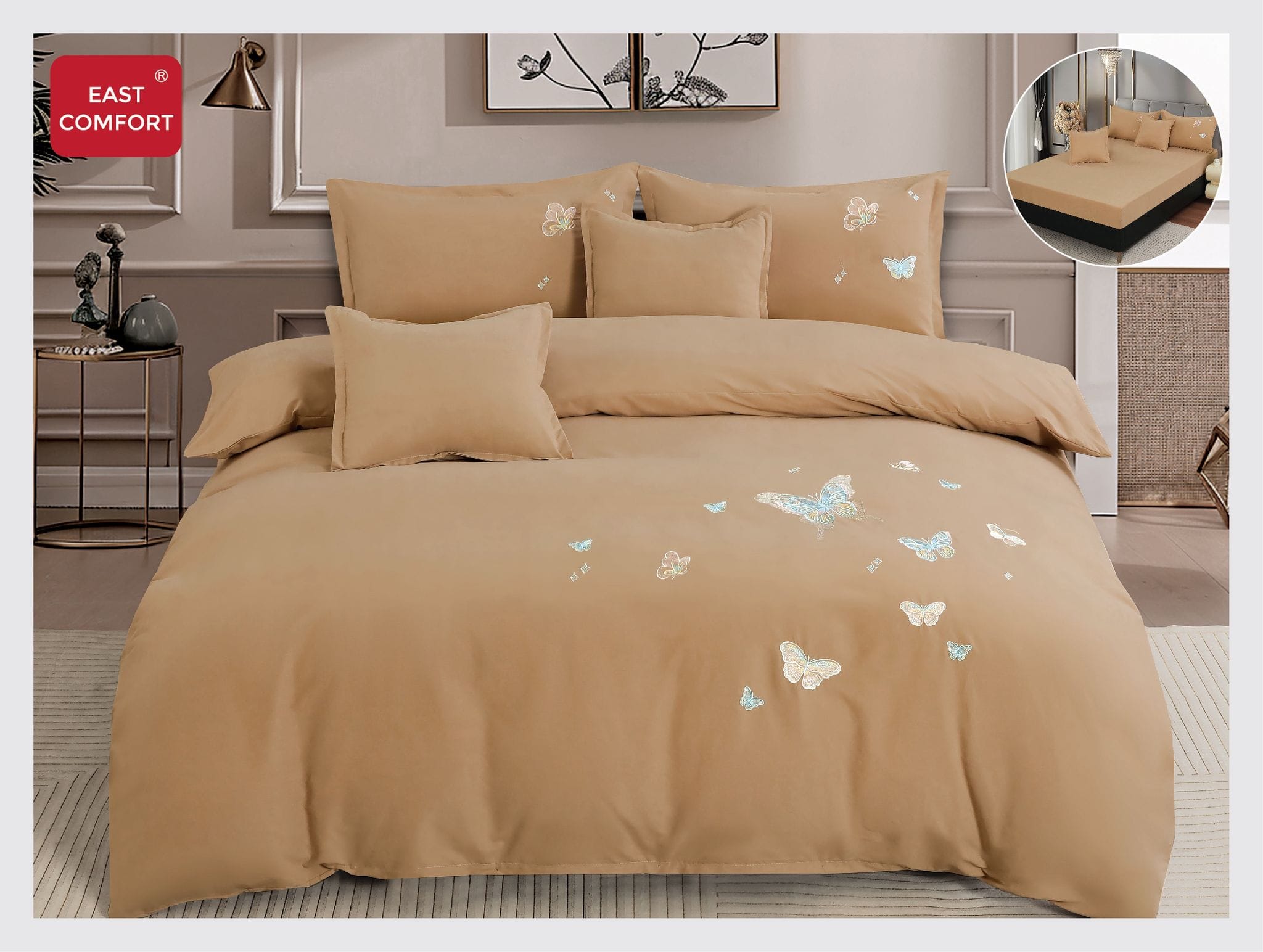Set lenjerie compusa din 6 piese pentru pat dublu confectionata din bumbac finet  de calitate superioara. Aceasta lenjerie premium este ideala pentru a da o nota eleganta dormitorului tau sau pentru a o folosi in cadrul unei pensiuni sau hotel si a-ti intampina oaspetii in cel mai elegant mod posibil.