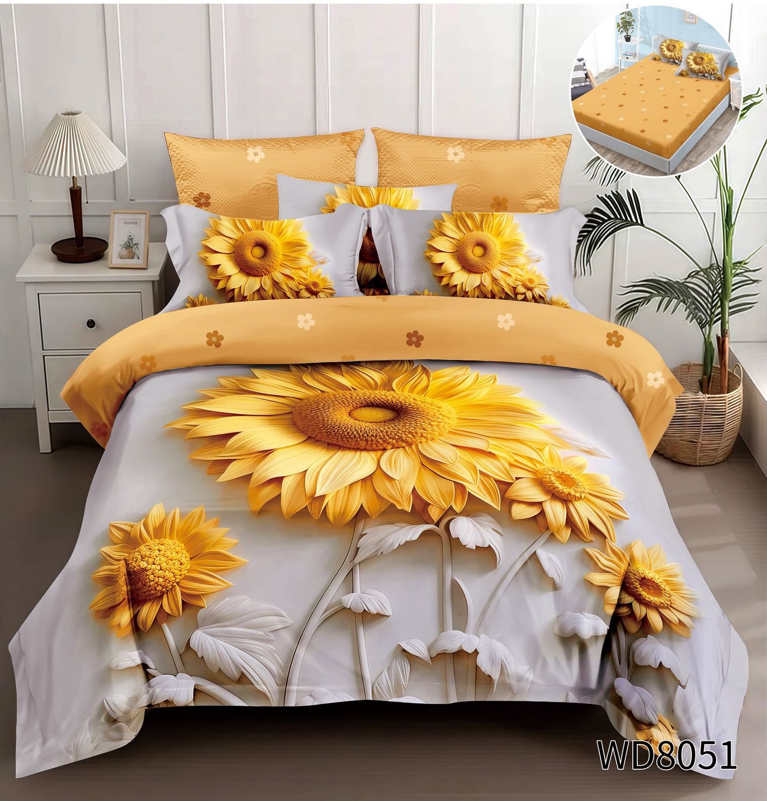 Lenjerie pat dublu 5 D cu elastic floarea soarelui 5D36