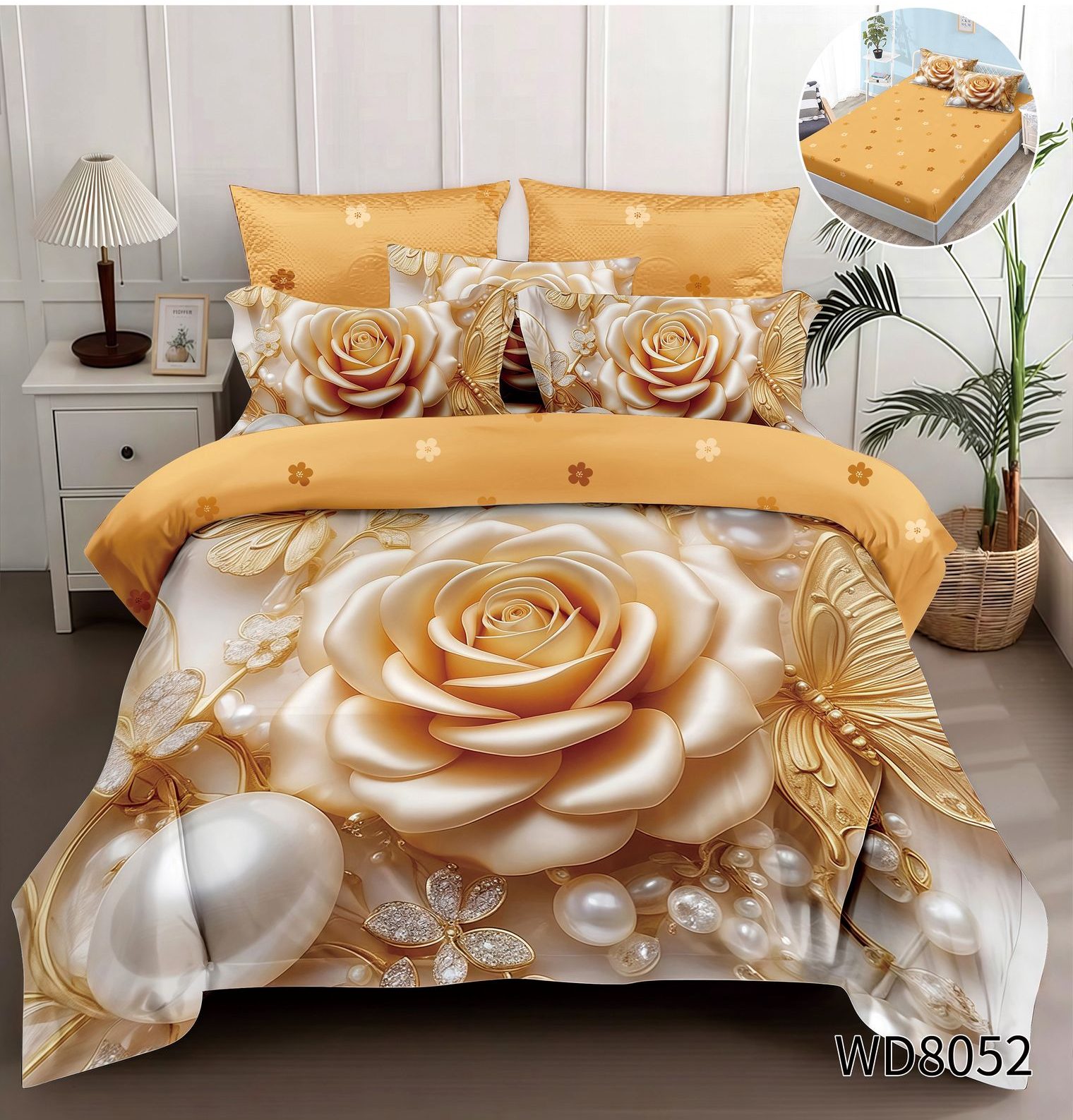 Lenjerie pat dublu 5 D cu elastic flori 5D38