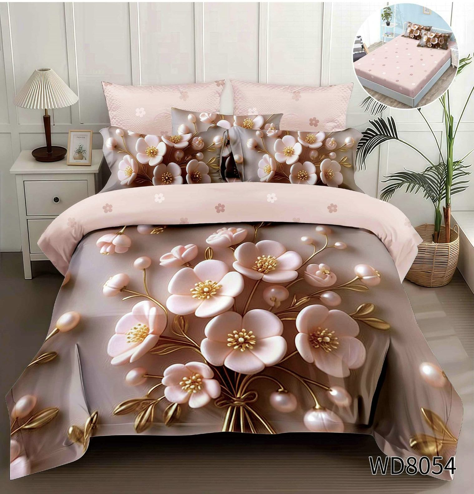 Lenjerie pat dublu 5 D cu elastic flori 5D39