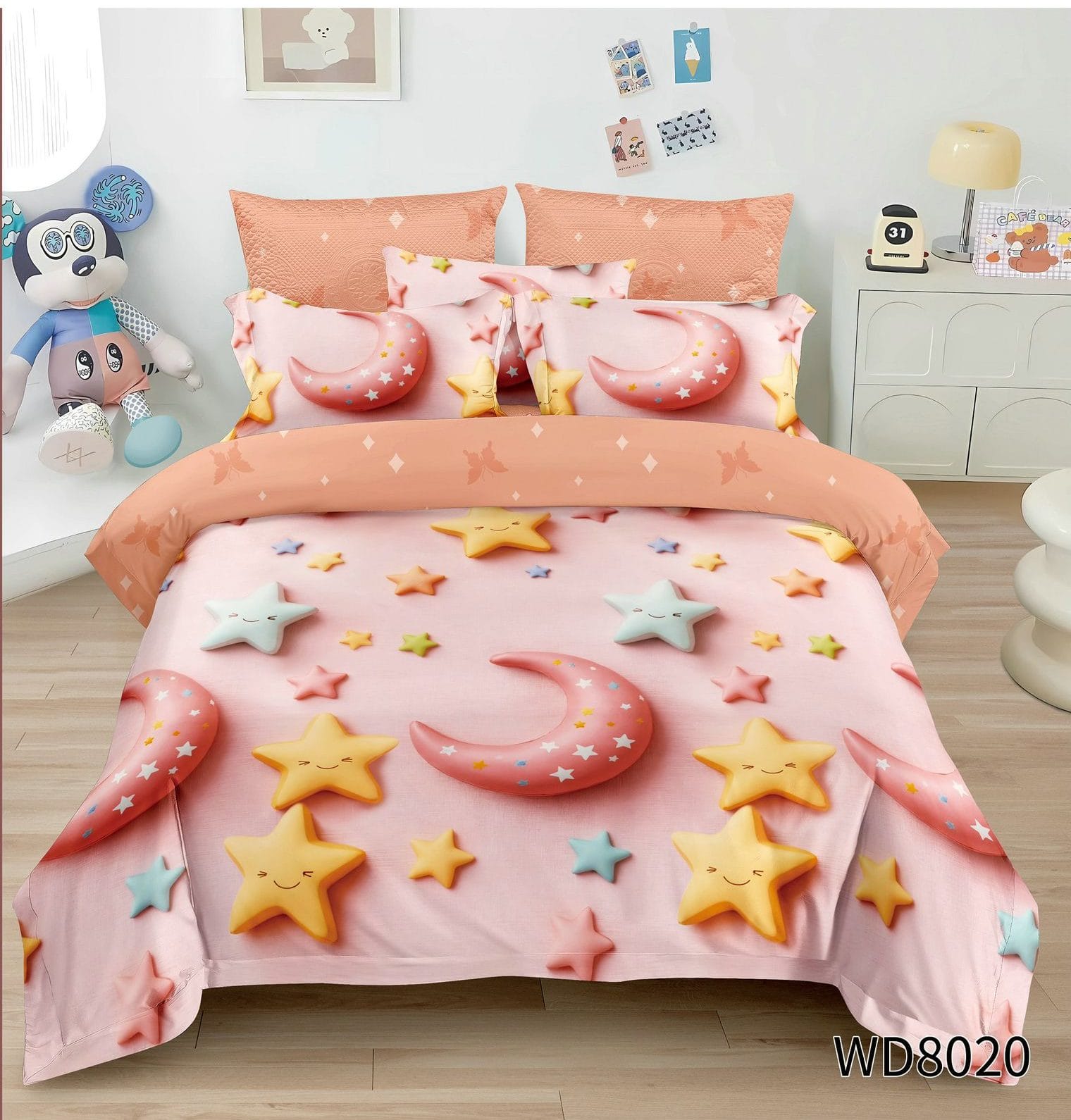 Lenjerie pat dublu 5 D cu elastic luna stele 5D29