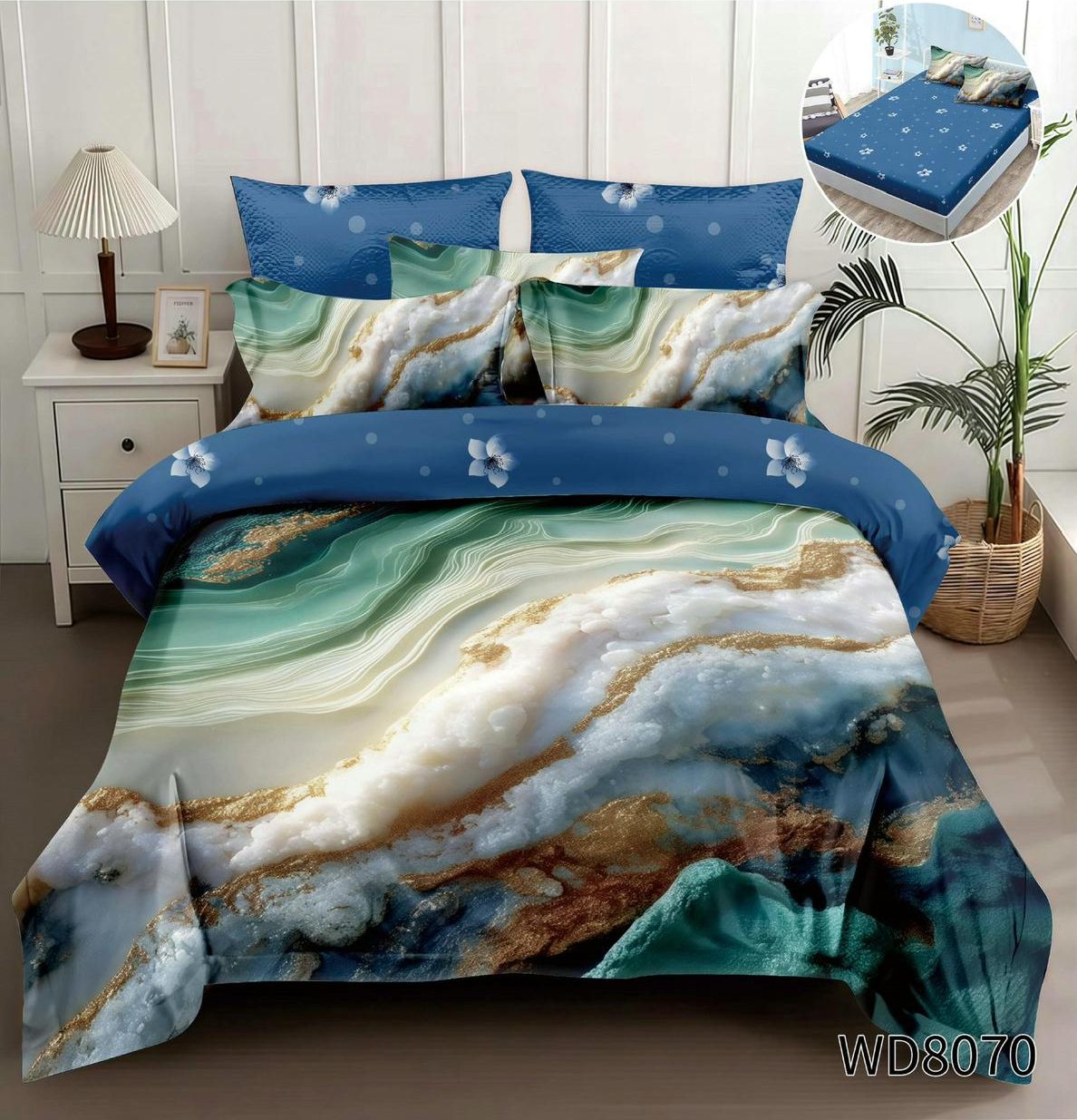 Lenjerie pat dublu 5D cu elastic 5D77