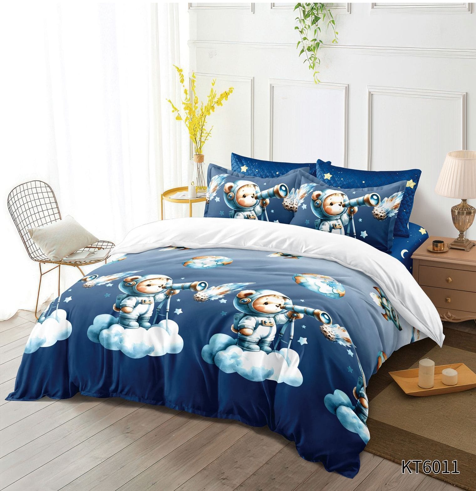 Lenjerie pat dublu 6 piese cu elastic ursuleti  KT07