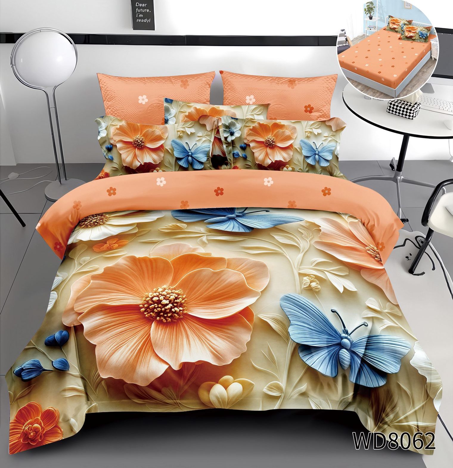 Lenjerie pat dublu cu flori 5D cu elastic 5D61
