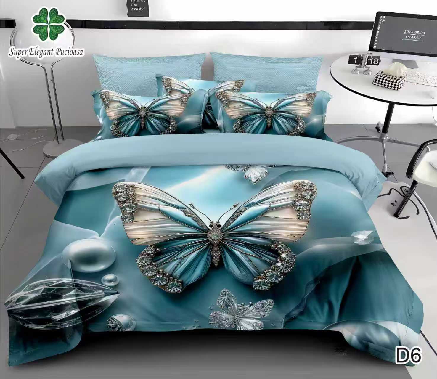 Lenjerie pat dublu cu fluturi 5D cu elastic 5D71